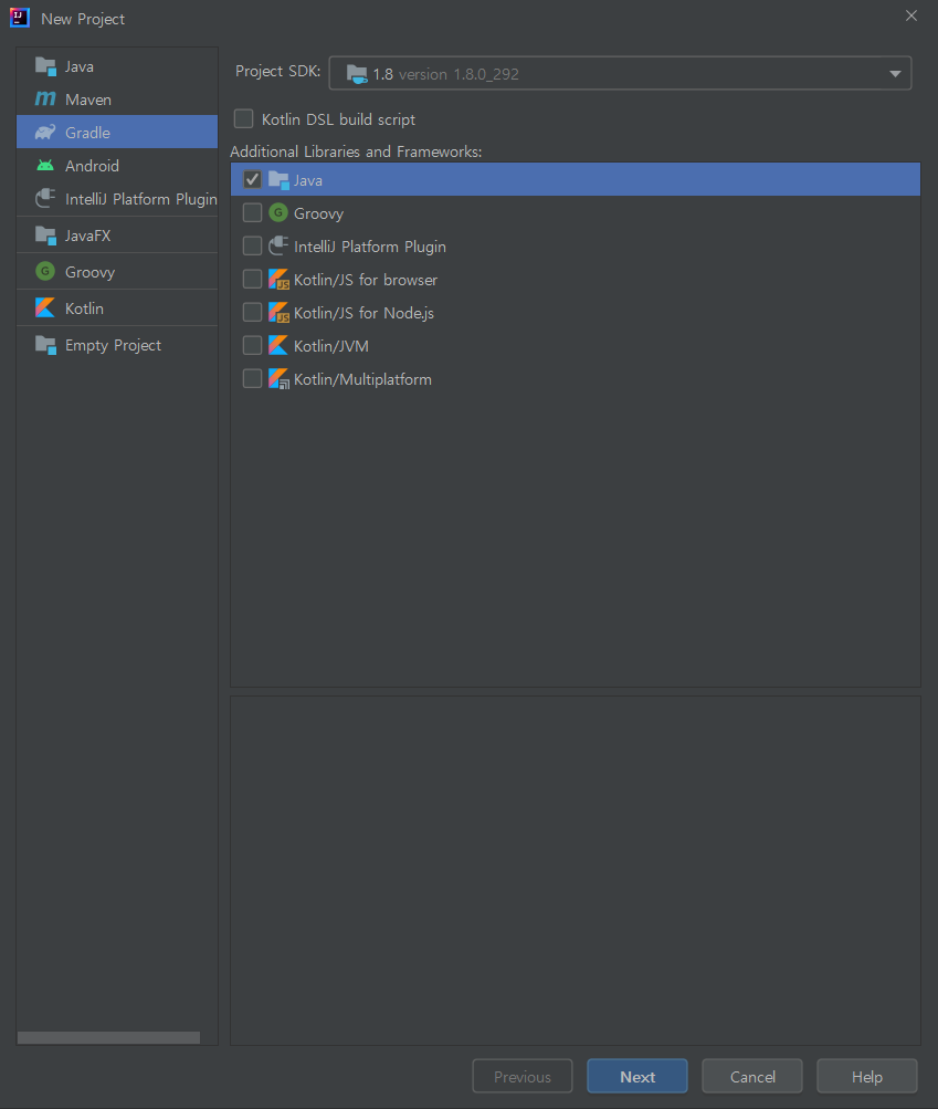 인텔리제이에서 그레이들 프로젝트 생성