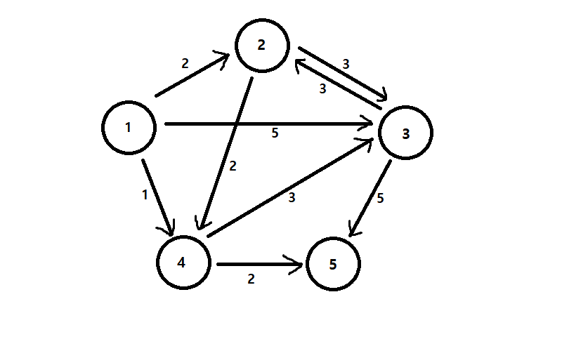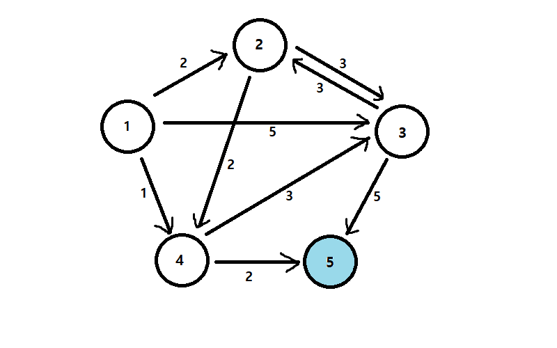 | 거리 | 0 | 2 | 5 | 1 | 무한 |