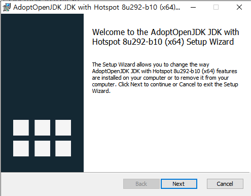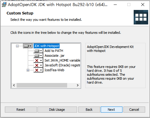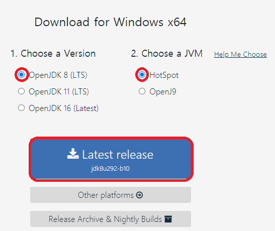 버전은 OpenJDK 8, JVM은 HotSpot 을 골라준다.