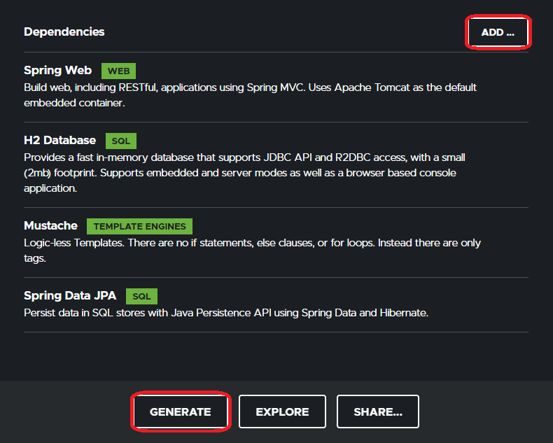 - 빌드 구성을 단순화하기 위해 독자적인 '스타터' 종속성을 제공합니다.