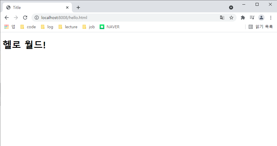 브라우저를 열고 상단의 주소 표시줄에 http://localhost:8080/hello.html 을 입력해보자.