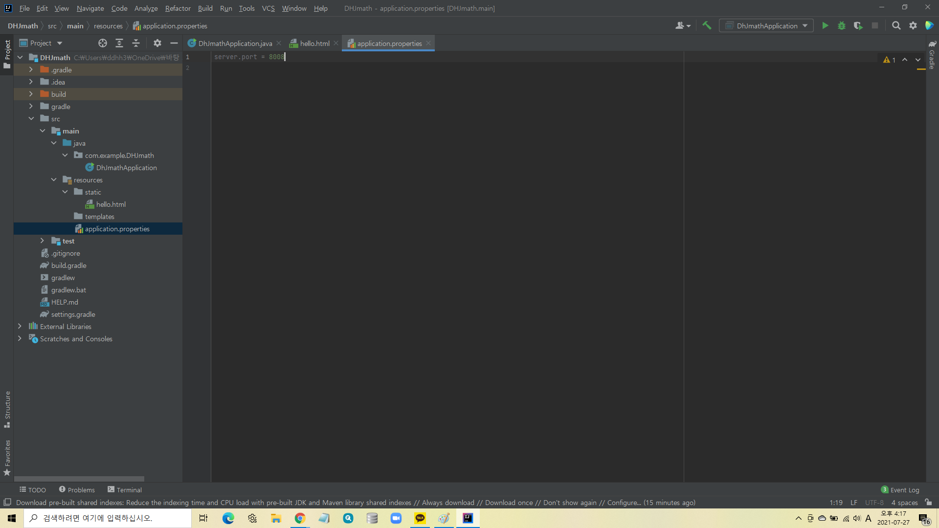 다운받은 파일은 압축을 풀어준 후 IntelliJ에서 열어주면 자동으로 프로젝트가 실행된다.