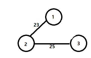 다음과 같이 3개이 도시가 있고 각 도시 간 도로를 건설하는 비용은 23, 13, 25이다.