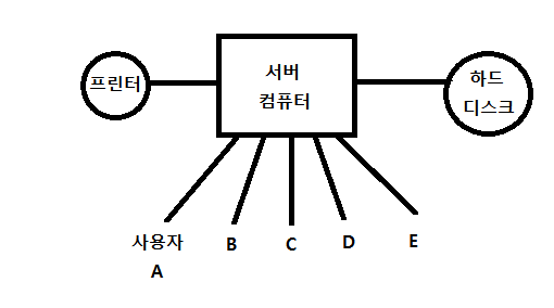 예를 들어, 서버 컴퓨터에 프린터와 대용량 하드 디스크가 달려 있다고 하자.